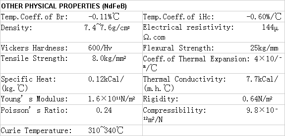 MAGNETIC AND PHYSICAL CHARACTERISTICS (NdFeB)